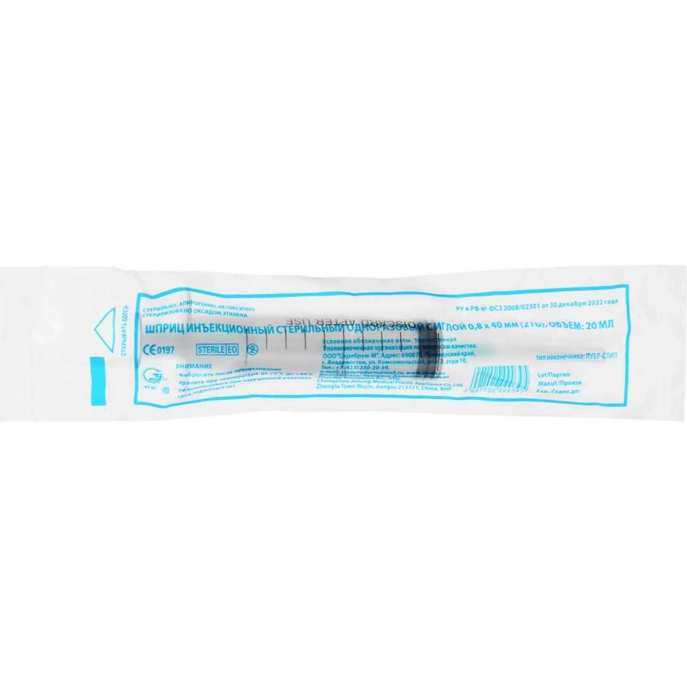 Шприц 3-комп. однораз. 20мл LS 21G(0,8x40) над. 40шт/уп Джинлонг