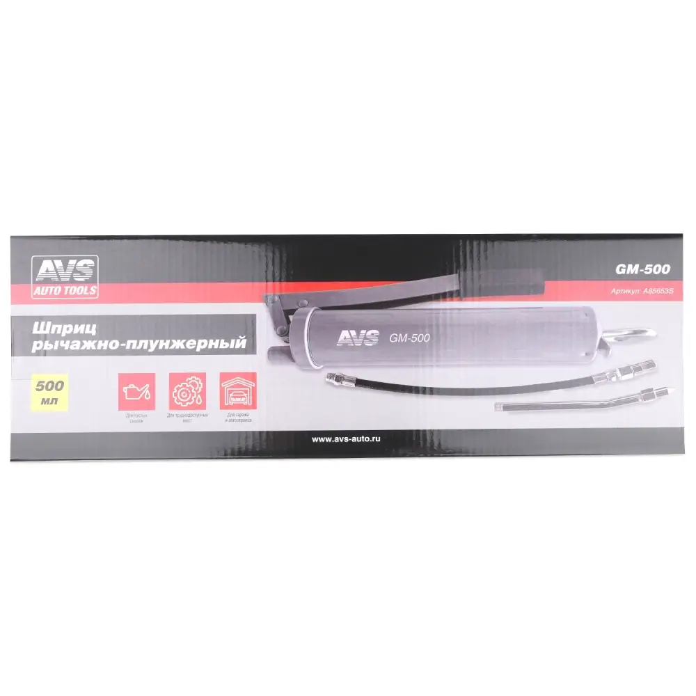 Шприц рычажно-плунжерный 500 мл (гибкий шланг, трубка) под тубу AVS GM-500