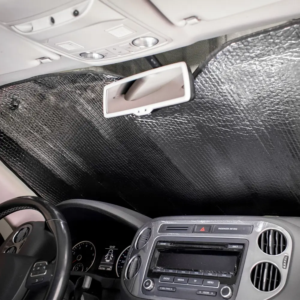 Двусторонняя солнцезащитная шторка размером необходима для блокировки попадания солнечных лучей со стороны лобового стекла в салон машины. Серебристая поверхность шторки отражает солнечные лучи, защищая салон и торпеду автомобиля от нагрева. Крепится к лобовому стеклу с помощью двух присосок. Высота шторки 60 см - идеальна для отечественной классики и автомобилей A и B категории.