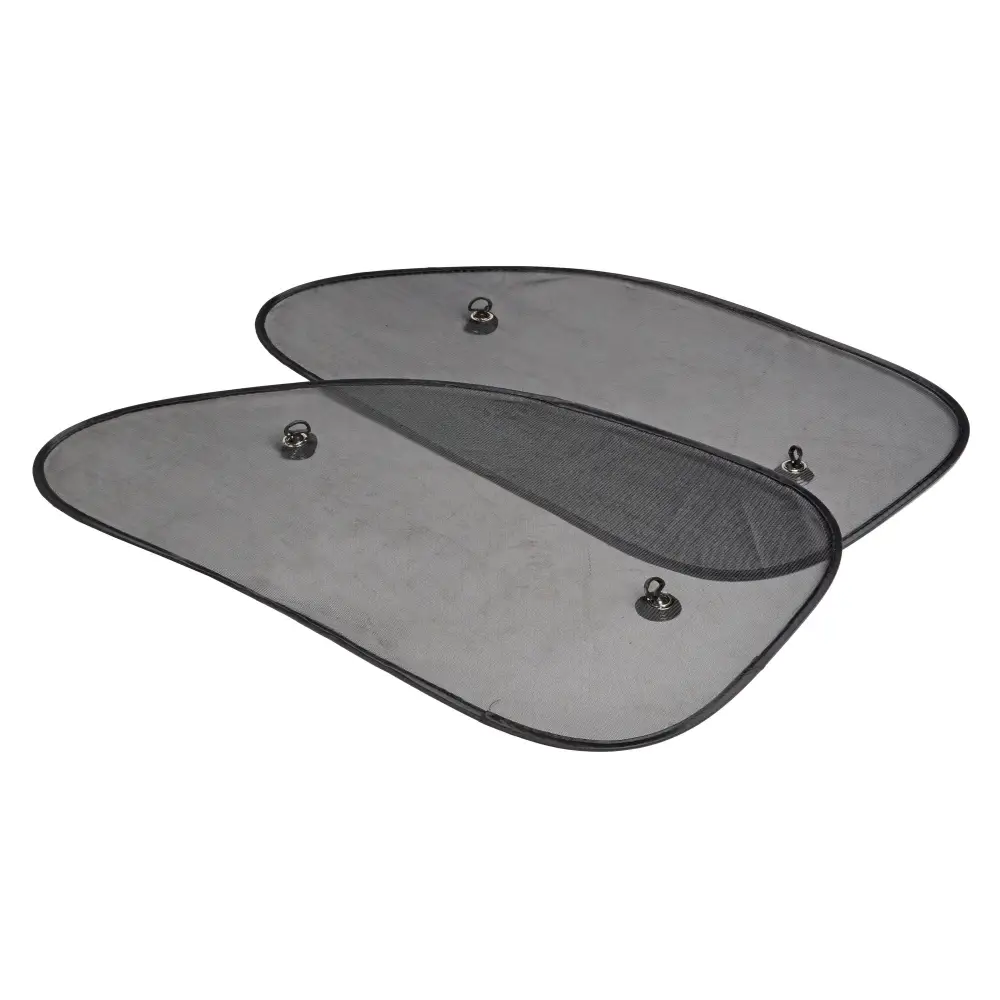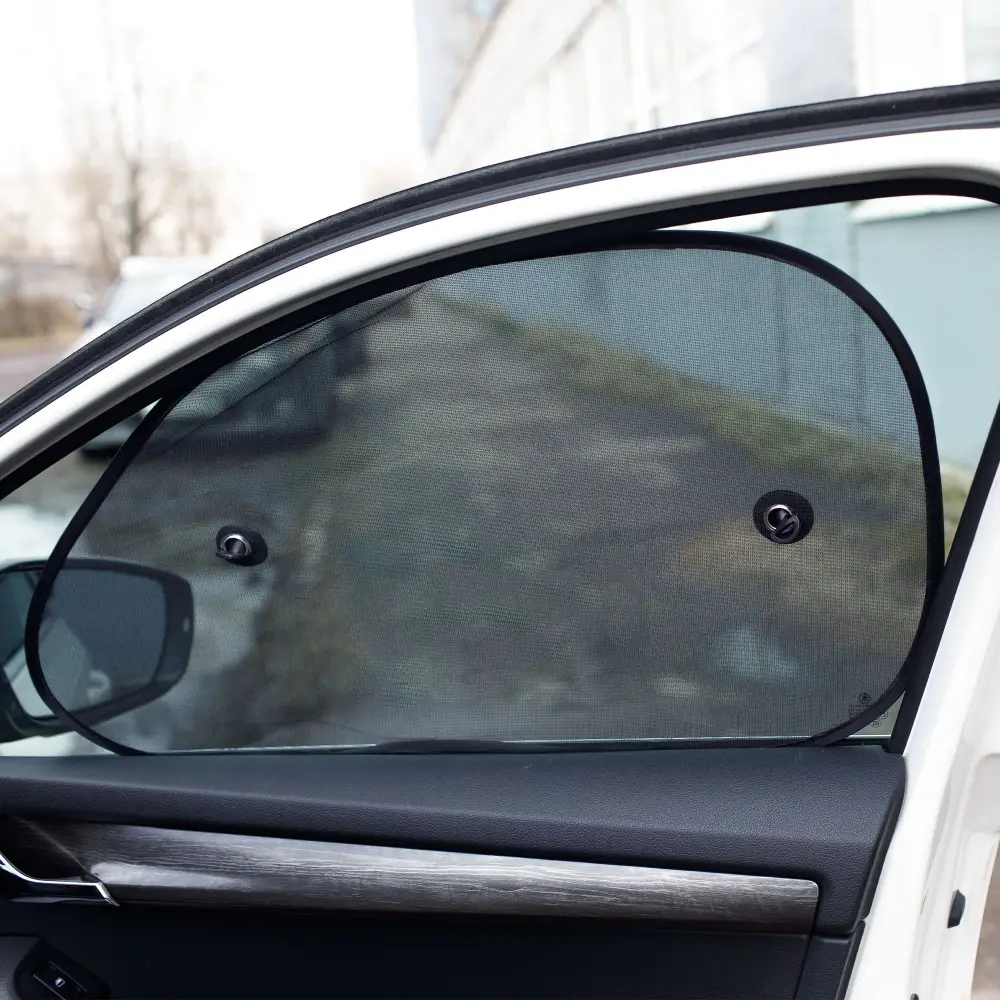 Солнцезащитные шторки черного цвета из полупрозрачной сетки имеют размер 65*38см и являются бюджетным и надежным вариантом, чтобы снизить уровень попадания солнечных лучей в салон автомобиля. Шторки помогут увеличить степень удобства при передвижении пассажиров в авто. Кроме того, постоянная защита салона от солнца позволит сохранить первоначальный вид автомобильных сидений и защитить их от потери цвета. Шторки крепятся с помощью присосок на боковые стекла машины.