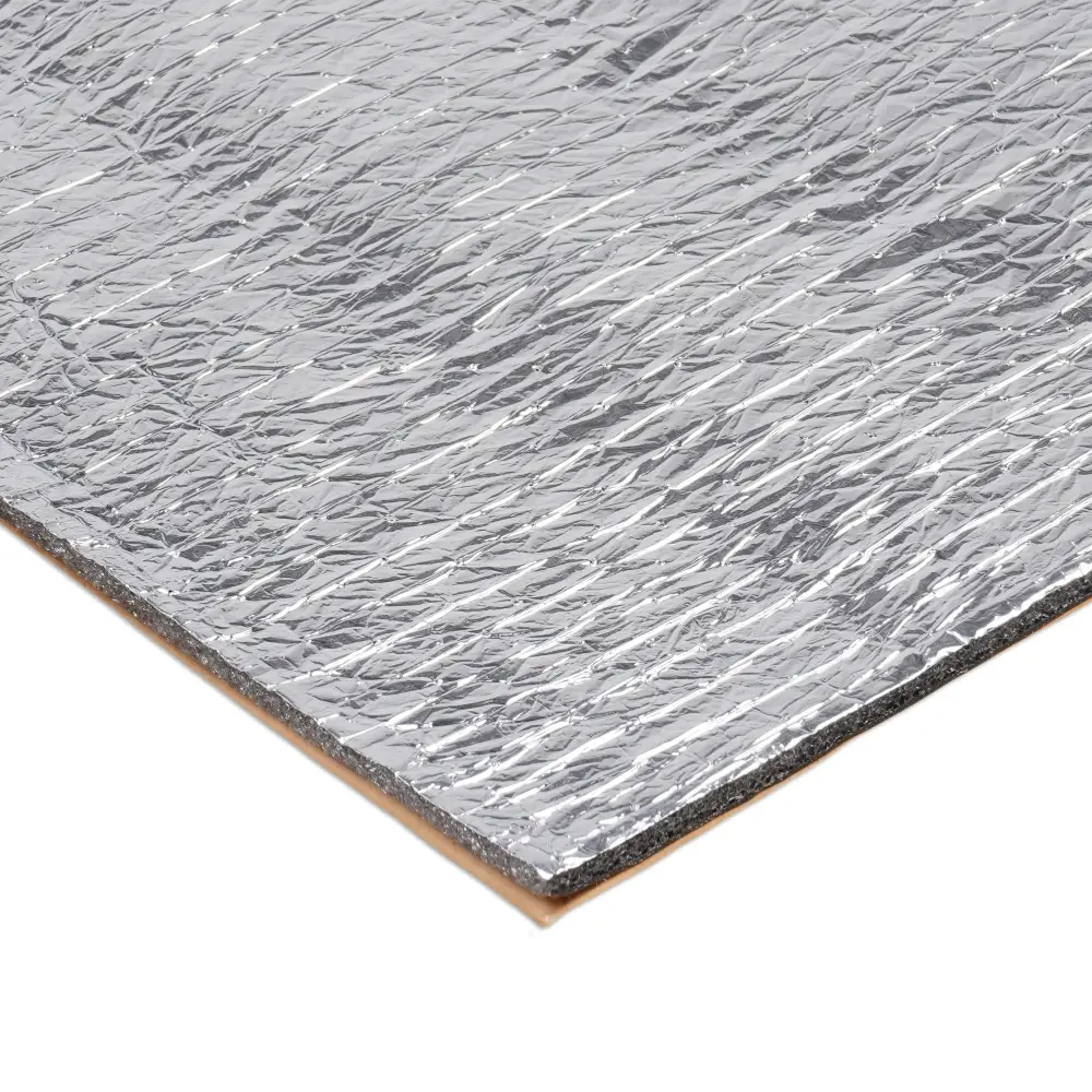 Теплозвукоизоляционный материал - покрытый алюминиевой фольгой или металлавсаном вспененный пенополиэтилен с полимерным влагостойким клеевым слоем. Толщина мастичного клеевого слоя 2мм и его вязкопластичные характеристики придают материалу вибродемпфирующий эффект.
