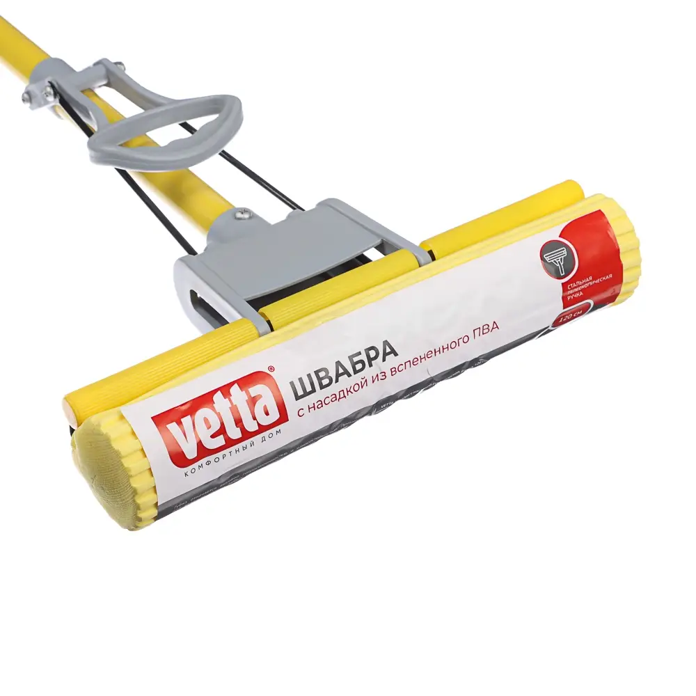Швабра с телескопической ручкой VETTA позволит производить влажную уборку, исключая контакт рук с грязной водой. Швабра имеет удобный и надежный механизм отжима. Насадка из вспененного ПВА с одним рядом роликов имеет ребристую поверхность и хорошо собирает пыль и грязь. Плавно и легко скользит по полу, делая поверхность чистой с первого раза.