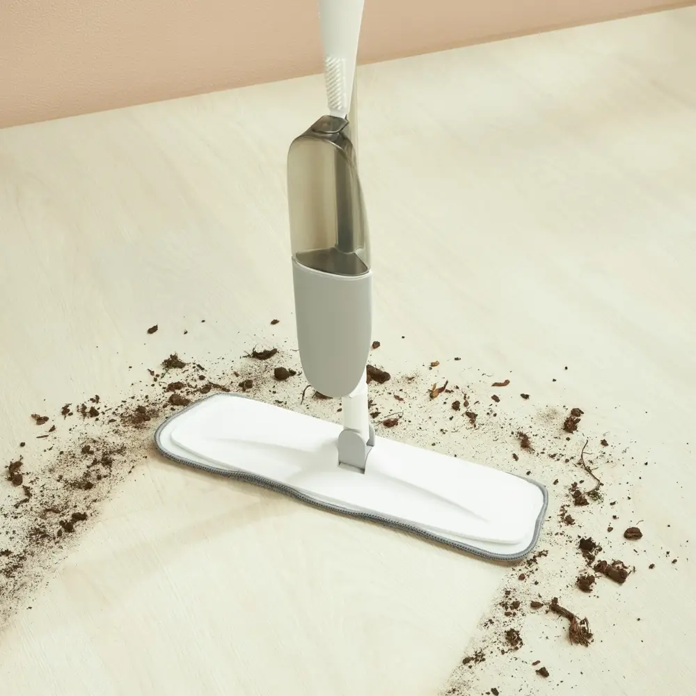 Швабра с распылителем благодаря простейшей системе распыления жидкости станет незаменимым помощником в Вашем доме. За счет простоты устройства механизм пульверизатора прослужит достаточно долго. Механизм не забивается даже при использовании густых и мыльных растворов.