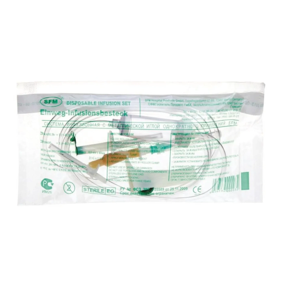Система переливания р-ров одноразовая (металл.шип ) игла 0,8х40 21G SFM