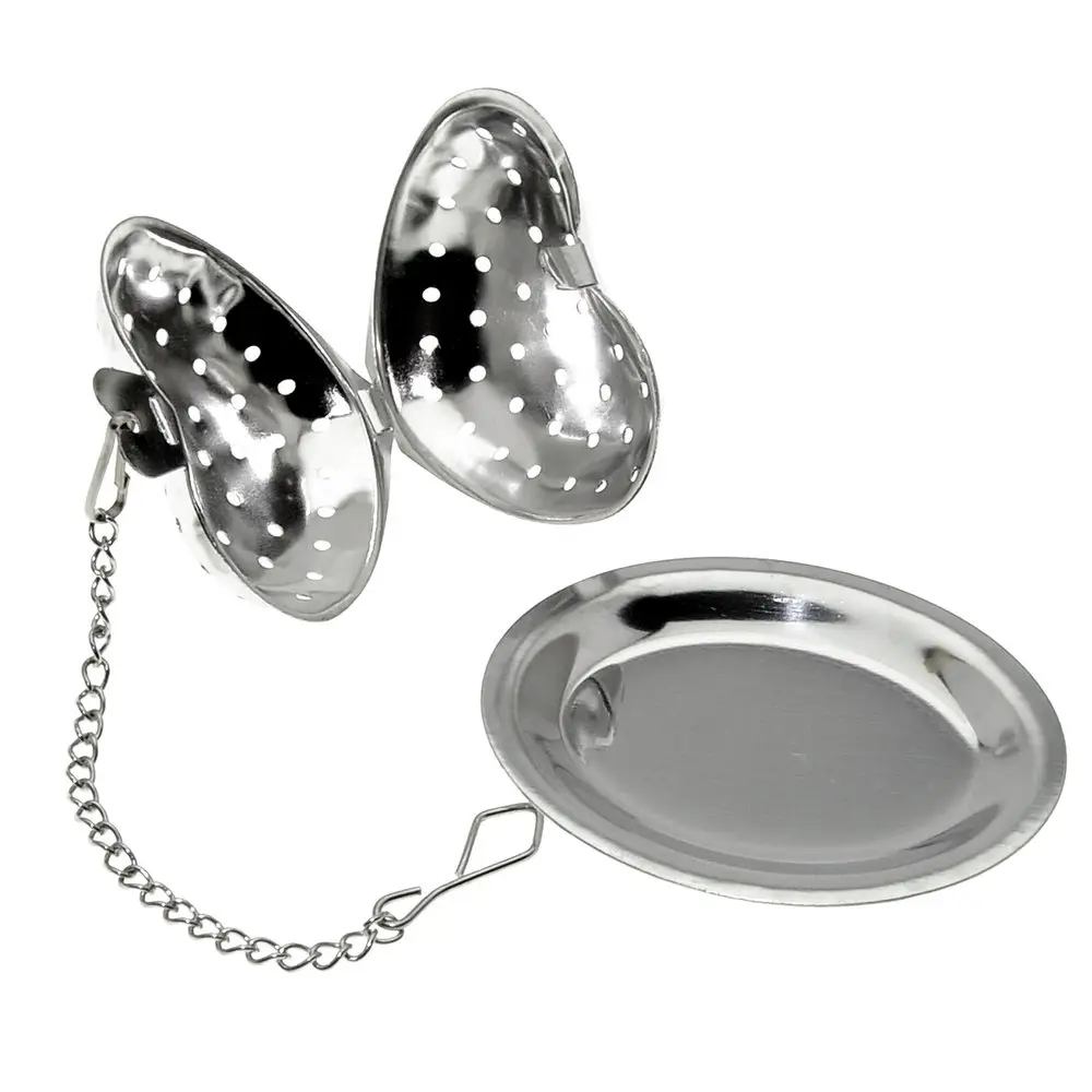 Заваривайте чай прямо в кружке. Удобное ситечко для чая «Сердце» подходит для заваривания чая и трав, удобно в использовании и выполнено в привлекательном дизайне. Ситечко плотно закрывается, и вы получите ароматный напиток без остатков заварки. Блюдце-подставка используется для размещения ситечка после заваривания чая. Для удобства использования есть цепочка, с помощью которой удобно погружать предмет и доставать его из кружки. Очень полезный в доме предмет станет полезной покупкой или приятным подарком для родных и близких. Изготовлено из коррозионностойкой (нержавеющей) стали.