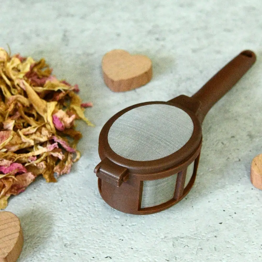Изделие выполнено в стильном дизайне, корпус изготовлен из пластмассы (полипропилена), сеточки – из коррозионностойкой стали. Ситечко занимает мало места, за ним просто ухаживать, можно мыть в посудомоечной машине.
