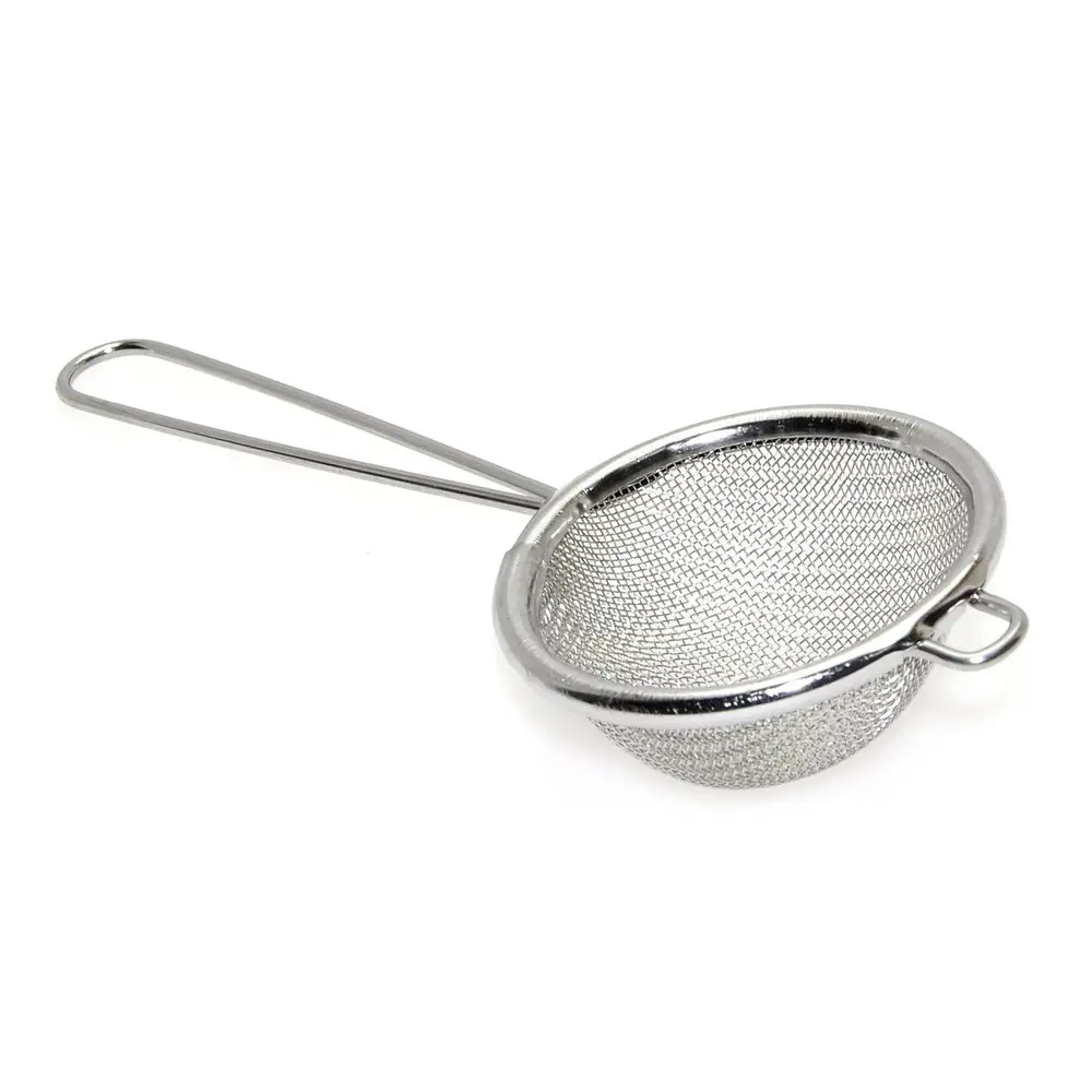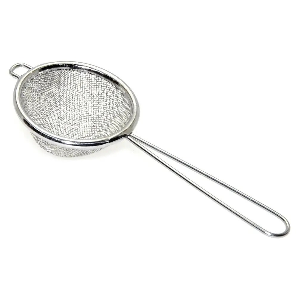 Небольшое ситечко всегда актуально в хозяйстве, сквозь него можно процеживать чай, кофе, травяные напитки, а также использовать для промывания изюма и сухофруктов. Маленькое ситечко удобно для приготовления детских напитков – прямо в чашку растолочь ягодки, процедить варенье и т.д. Диаметр изделия 5 см, изготовлено из стальной сетки, для удобства использования предусмотрена ручка. Можно хранить сито в шкафчике или подвесив на крючок. После использования вымыть с жидкими моющими средствами.