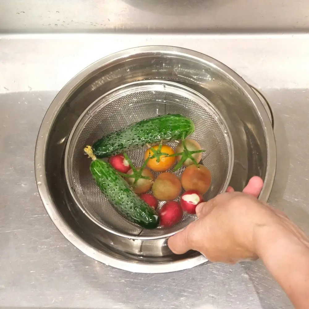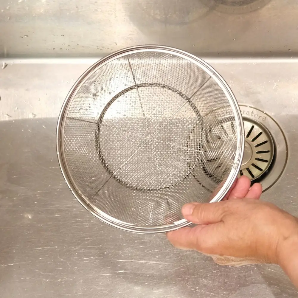 Полезное домашнее приспособление — сито на подставке для мытья фруктов и овощей, промывания круп, макаронных изделий. Данная модель отлично подходит и для процеживания компотов, отваров трав и бульонов. Наличие подставки позволяет использовать сито прямо в раковине, при этом обе руки у вас остаются свободными. Также изделие может использоваться в качестве емкости для фруктов и овощей при их сушке и хранении в домашних условиях. Приспособление изготовлено из нержавеющей стали, оснащено металлическим каркасом и подставкой. Материал не портится под воздействием влаги, долговечен и не образует коррозии. Диаметр 19 см.