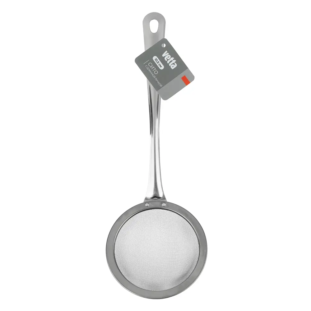 Сито с длинной ручкой VETTA, круглое, диаметр 10,5 см из нержавеющей стали в цвете серебро – это удобное приспособление для фильтрации напитков от мелких частиц и примесей, а также для просеивания сыпучих продуктов. Изделие из нержавеющей стали обладает устойчивостью к коррозии и деформации, не изменяет вкус продуктов, легко моется. Сито идеально подходит для просеивания сахарной пудры, муки, какао, процеживания чая и травяных настоев, а также для протирания ягод и фруктов и приготовления гладких однородных соусов.