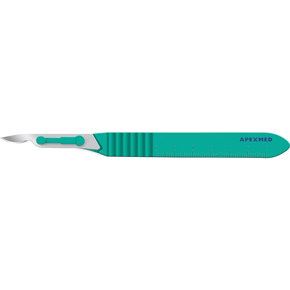 Скальпель хирург, однор., лезв.из нерж.ст. р-15С, Apexmed 10шт/уп
