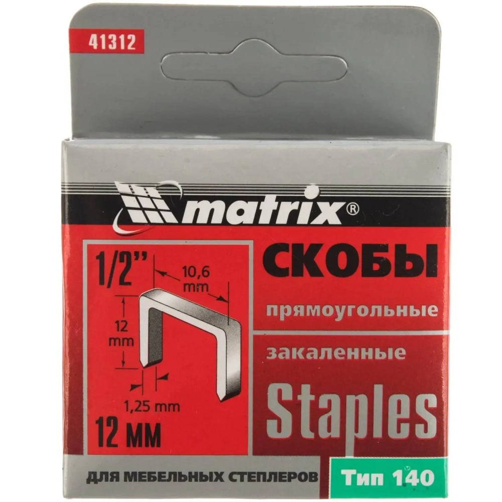 Скобы для степлера 12 мм закаленные тип 140 1000 шт Matrix 41312