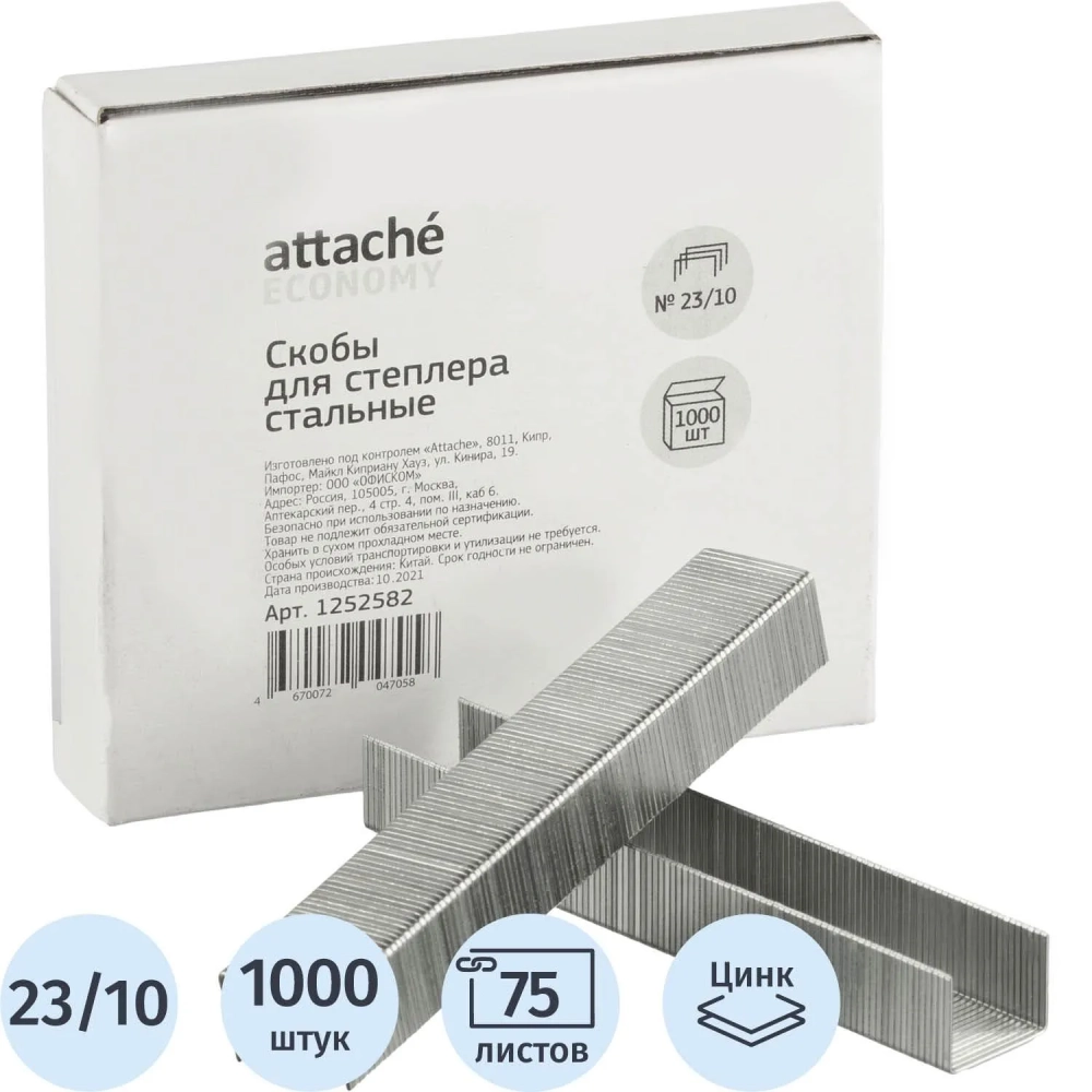Скобы для степлера №23/10 стальные, 1000 шт./уп