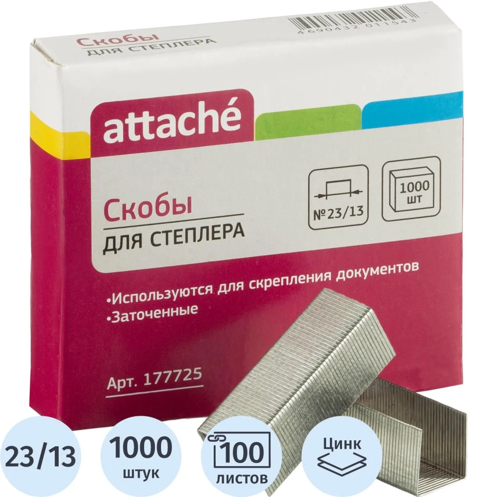 Скобы для степлера №23/13 ATTACHE оцинкованные (70-100лист) 1000шт./уп