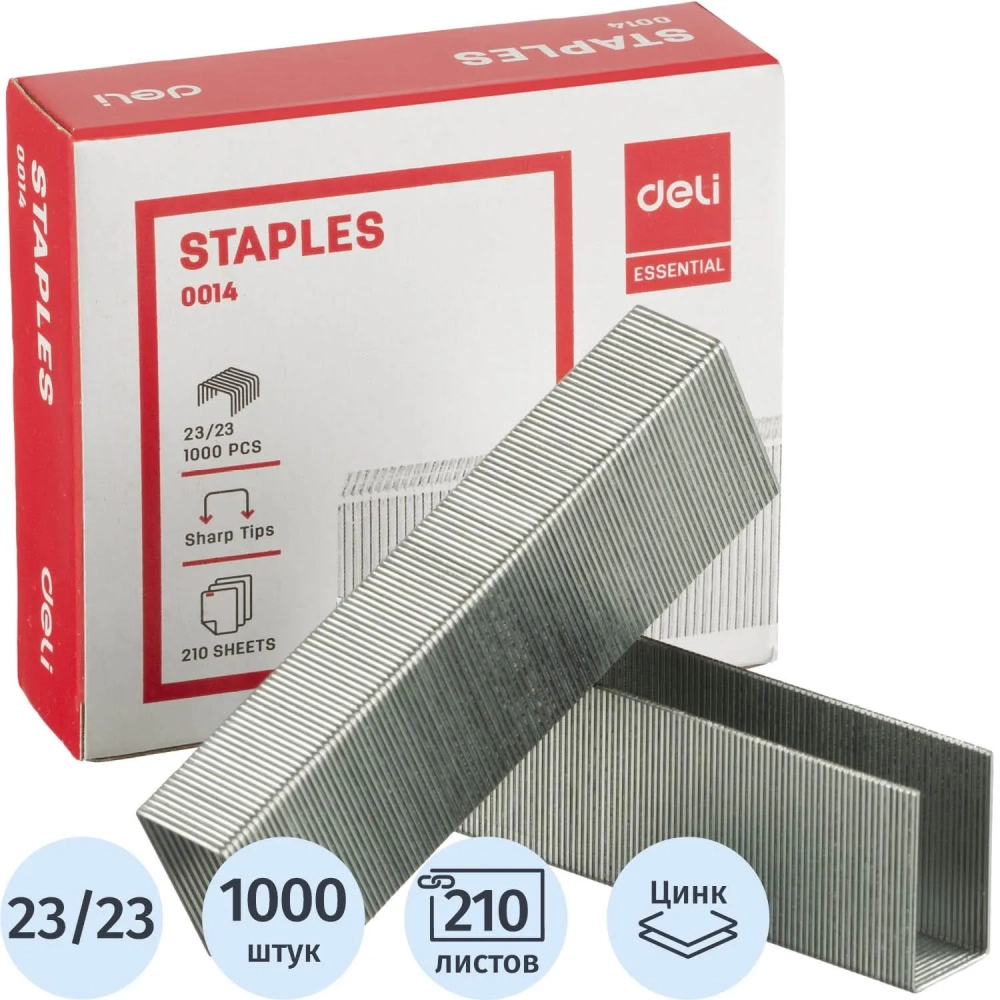 Скобы для степлера №23/23 Deli Е0014 оцинкованные 1000 шт./уп