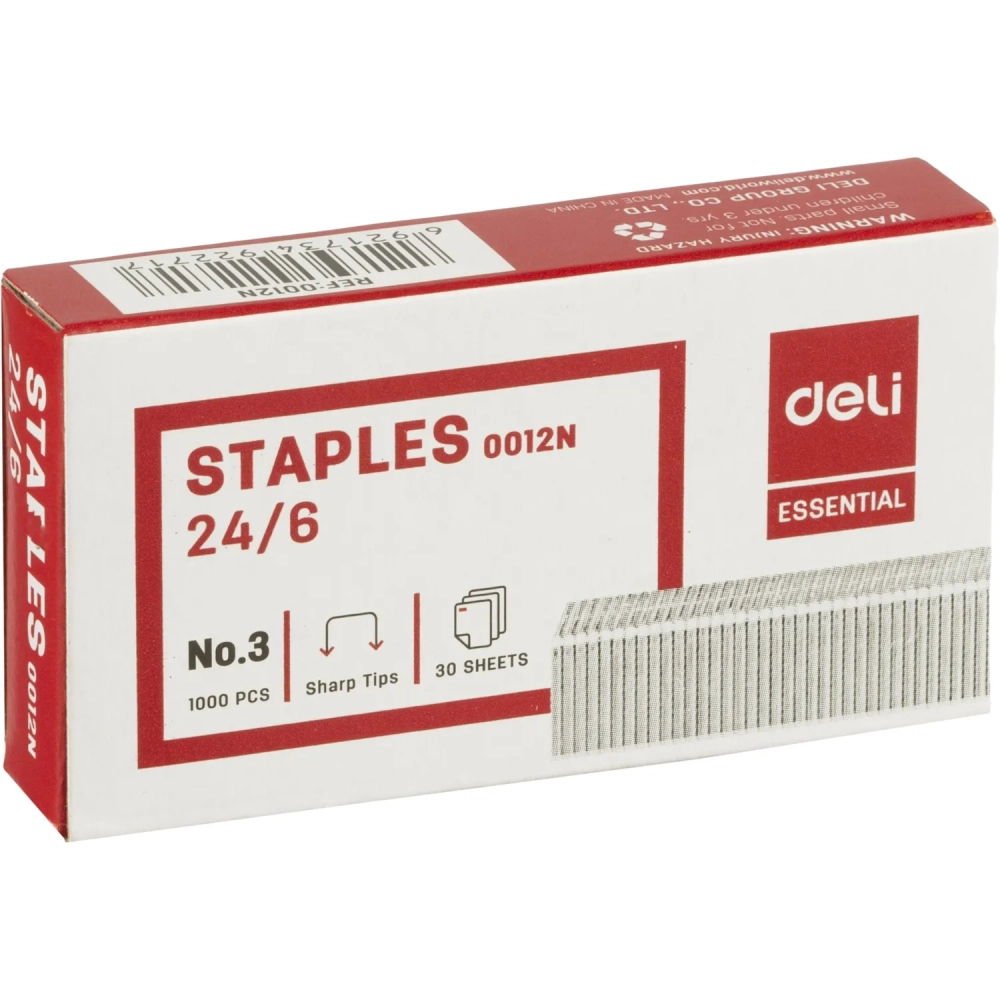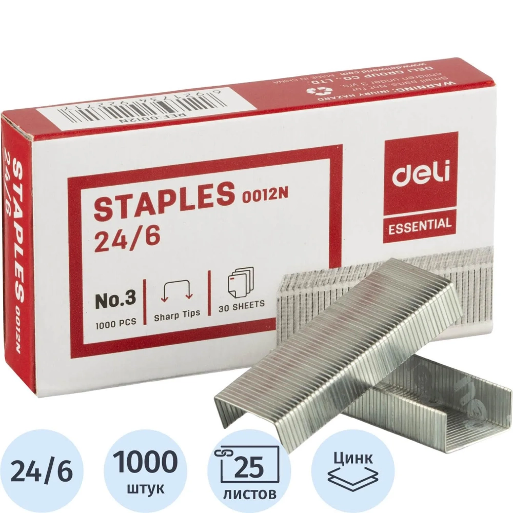 Скобы для степлера №24/6 Deli E0012N оцинкованные, 1000 шт./уп