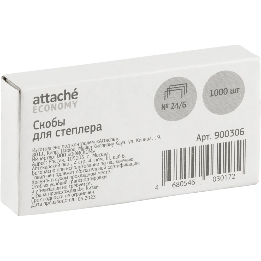 Скобы для степлера №24/6 оцинкованные (2-20 лис) 1000 шт/уп