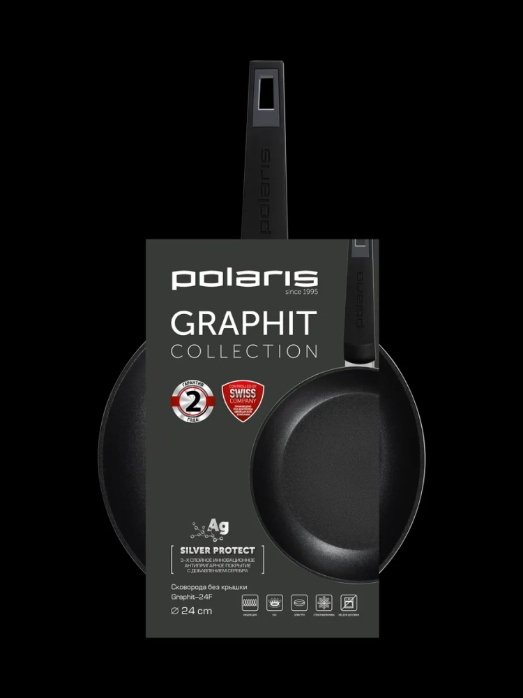 Polaris Graphit-24F - это универсальная сковорода, которая создана в соответствии с последними тенденциями и требованиями к профессиональной современной посуде: