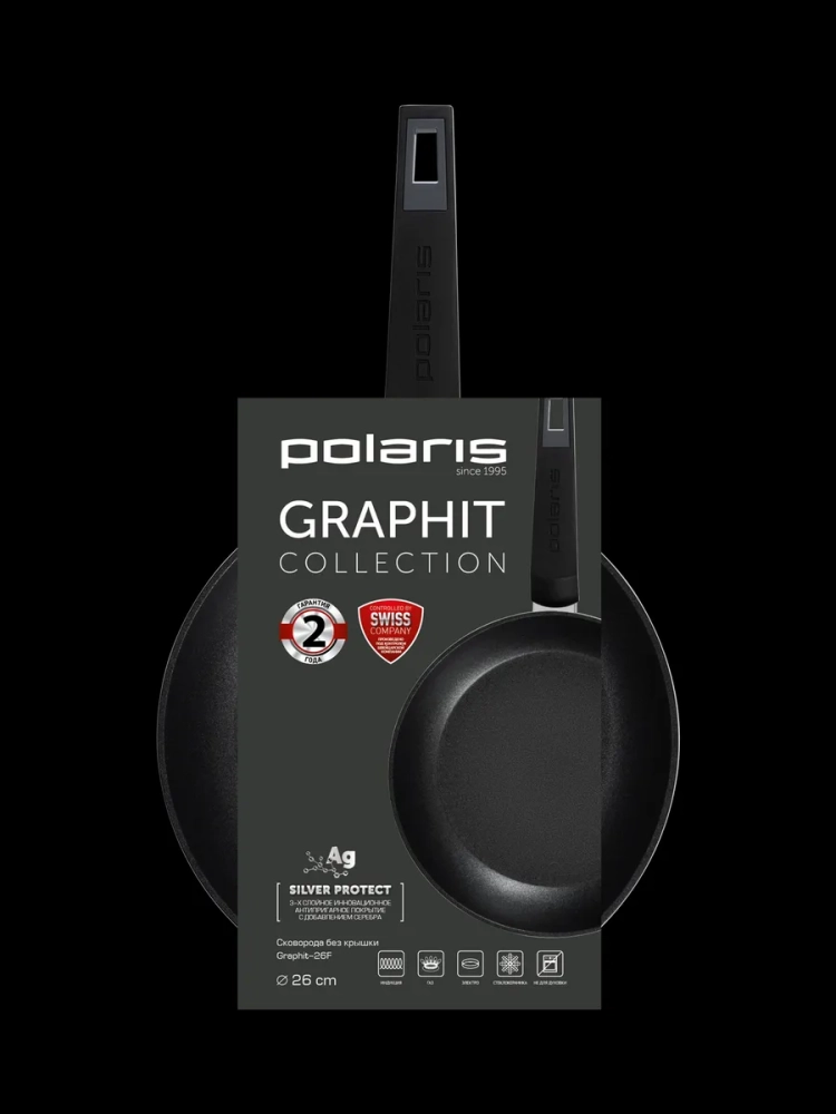Polaris Graphit-26F - это универсальная сковорода, которая создана в соответствии с последними тенденциями и требованиями к профессиональной современной посуде: