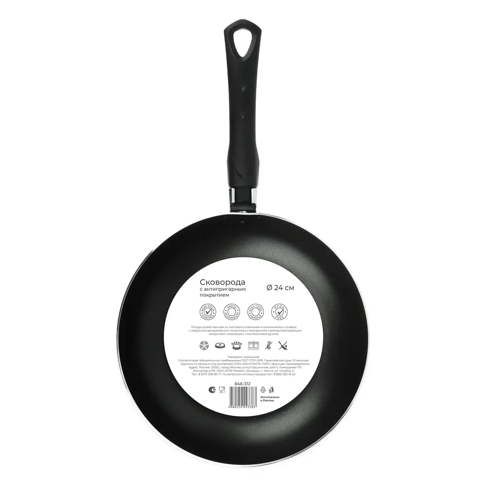 Быстро прогревается. К ней никогда не прилипает еда. Сковорода SATOSHI Клио заставит вас полюбить готовку, даже если до этого вы ели только полуфабрикаты. Готовьте традиционные блюда с душой, как это делали наши бабушки. Курица с рисом, жаренная картошка, котлеты, рагу — ни одно блюдо не прилипает к посуде. Прекрасная помощница на каждой кухне. 3 причины купить сковороду SATOSHI Клио диаметром 24 см: Бакелитовая черная ручка с петлей для подвешивания. Не содержит токсических веществ PFOA и PTFE. Можно мыть в посудомоечной машине.