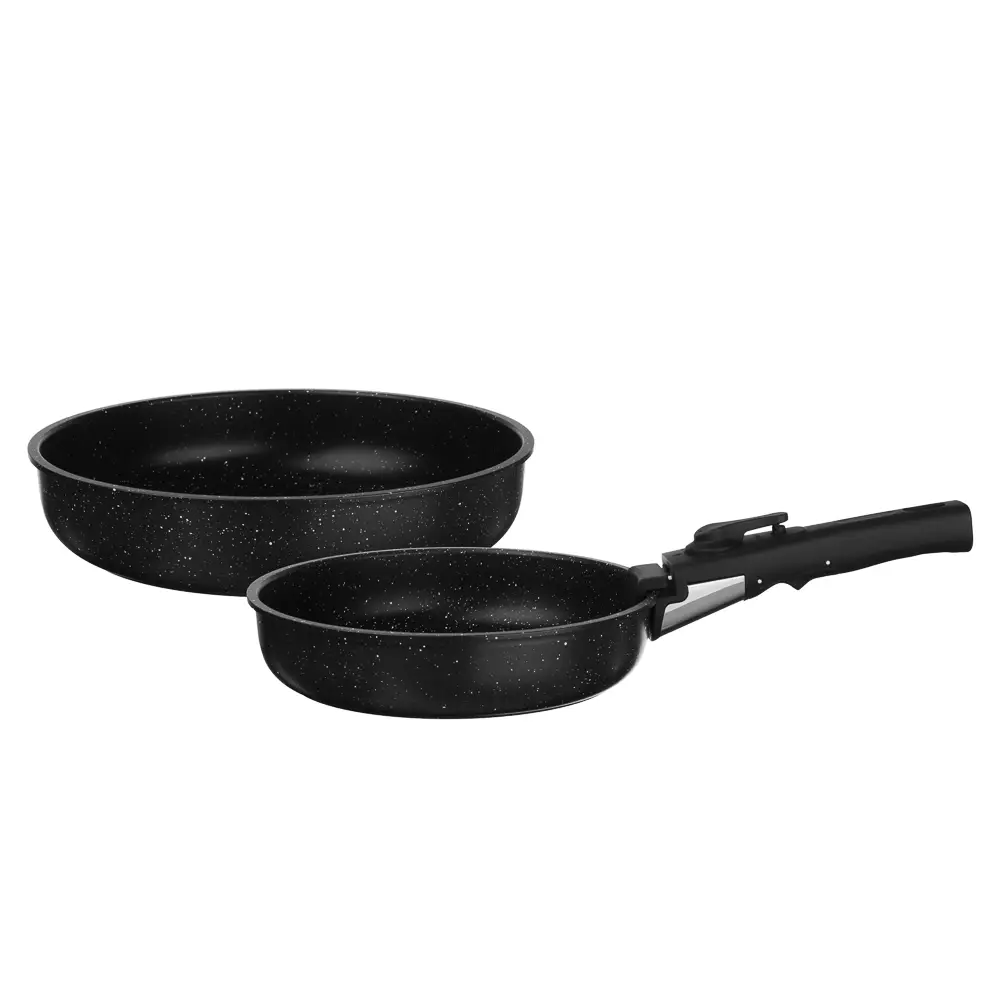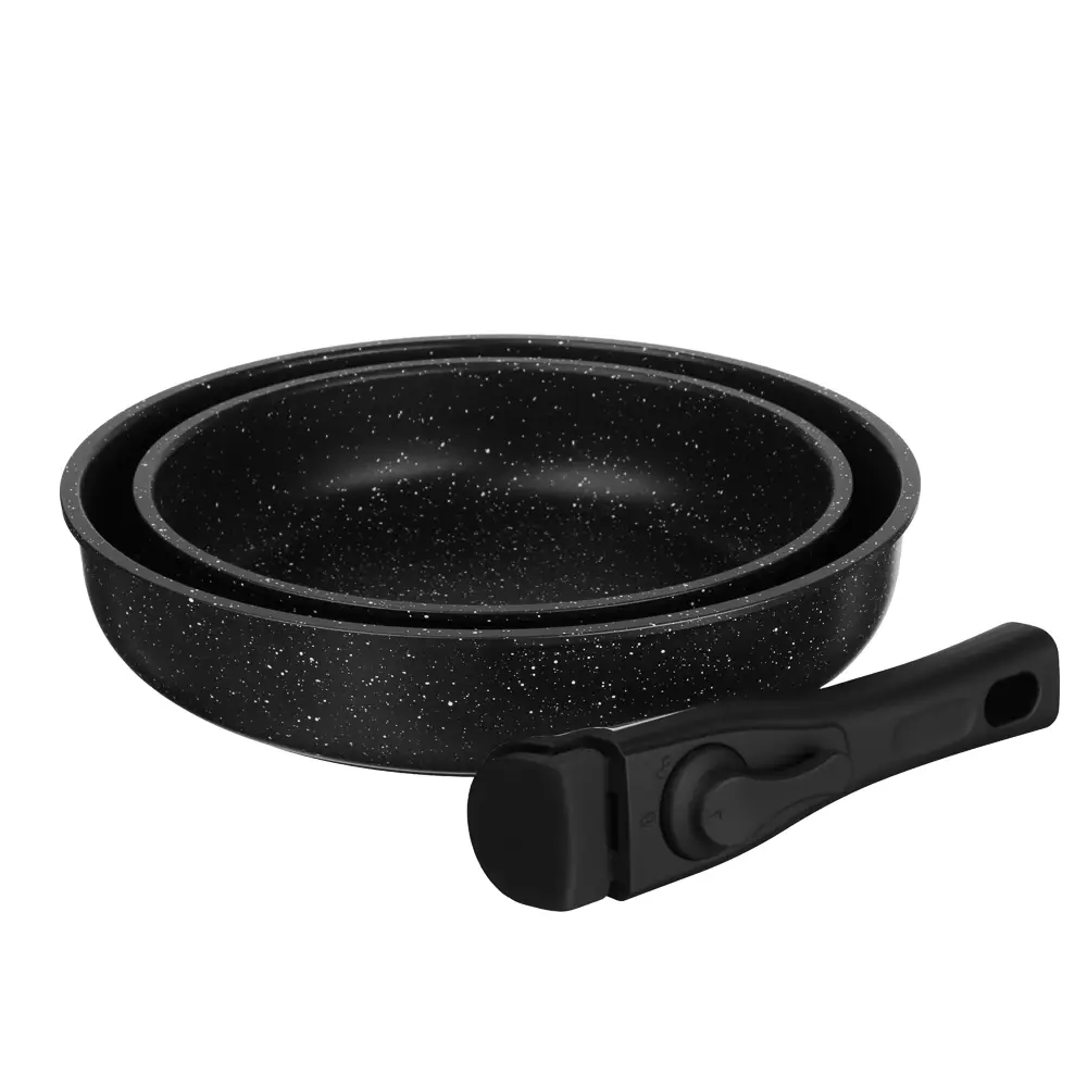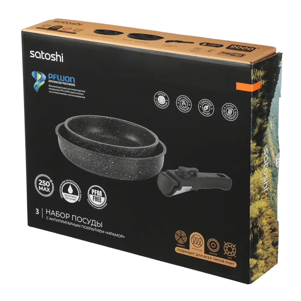 Сковорода SATOSHI Анси, Набор посуды 3пр, 20, 24 см.+съем. ручка, антиприг. покрытие мрамор, индукция