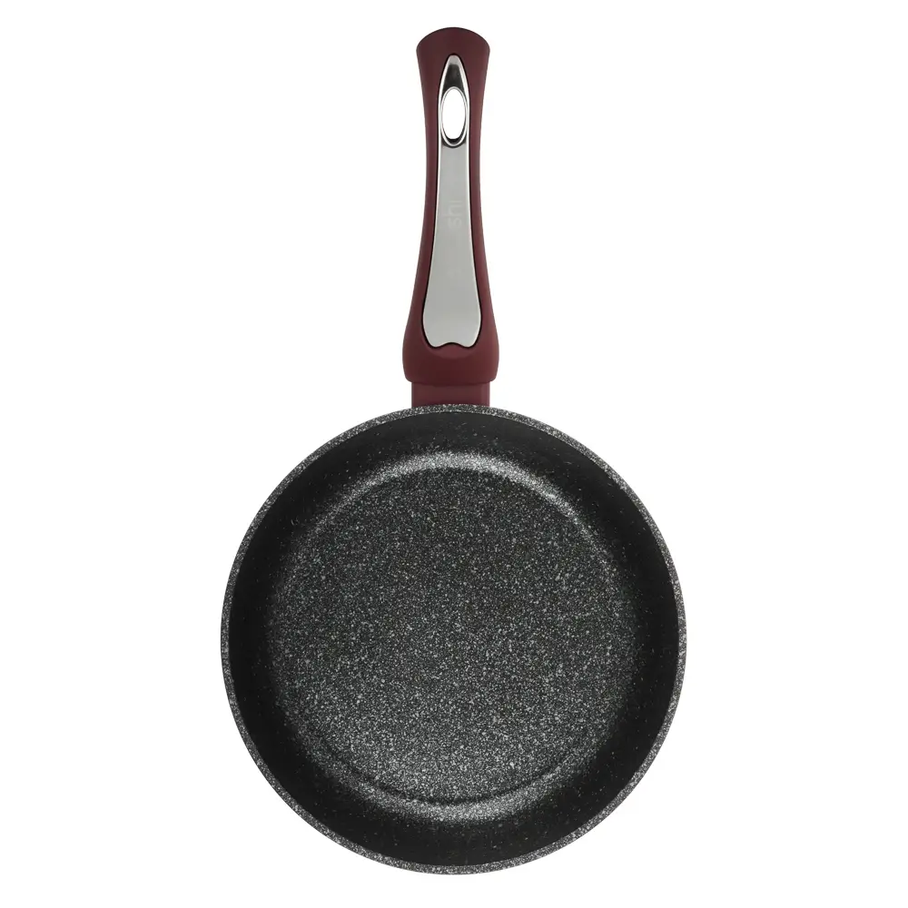 Сковорода SATOSHI Ла Мери диаметром 20 см сочетает в себе стиль и функциональность. Изготовленная из литого алюминия с антипригарным мраморным покрытием, она обеспечивает равномерный нагрев и позволяет готовить с минимальным количеством масла. Оригинальный бордовый цвет добавит изюминку вашей кухне, а эргономичная ручка с покрытием soft-touch гарантирует удобное использование — она не нагревается и не скользит. Совместимая с индукционными плитами, эта сковорода станет вашим надежным помощником для приготовления вкусных и здоровых блюд каждый день.. Подходит для ежедневного использования дома и на даче. Надёжная конструкция обеспечивает равномерный нагрев и удобство приготовления. Антипригарное покрытие облегчает уход и позволяет готовить с минимальным количеством масла. Совместимо с индукционными и другими типами плит.