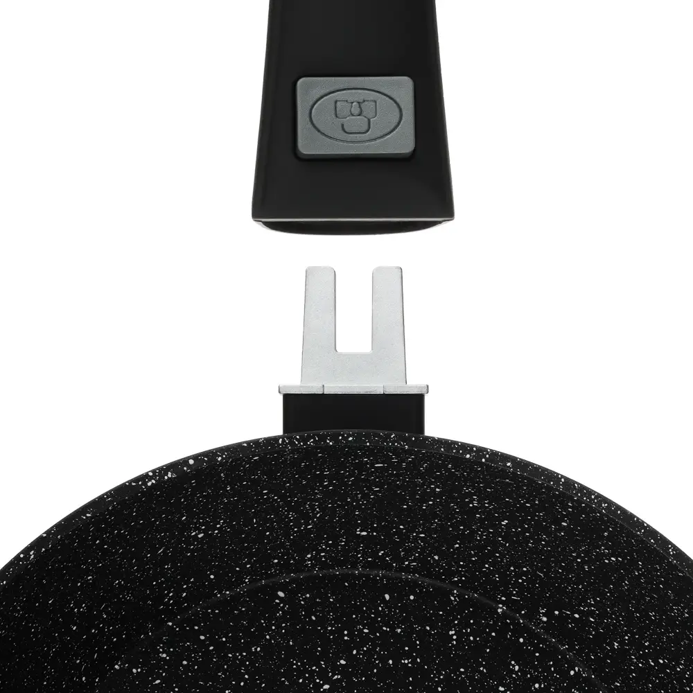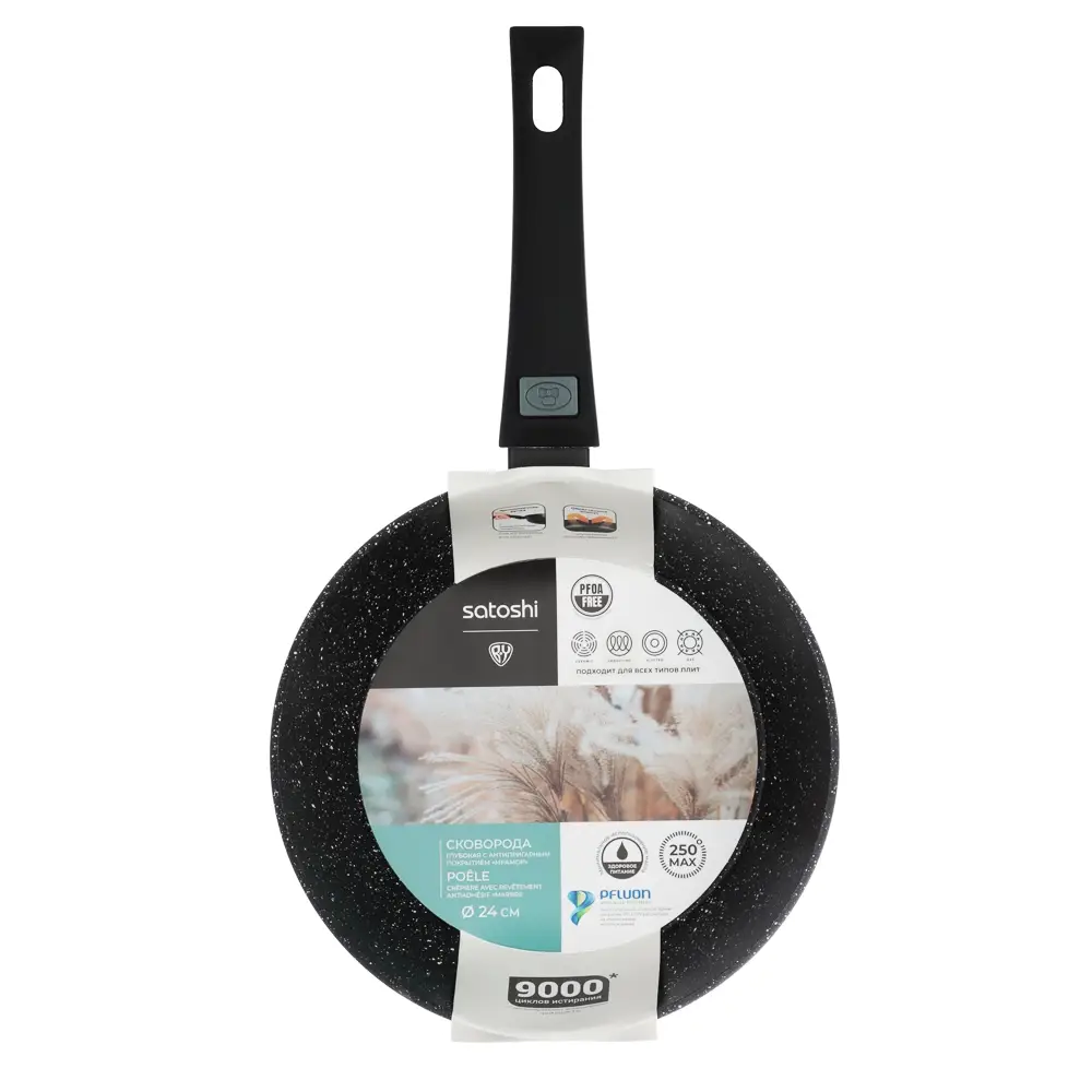 Сковорода SATOSHI Оникс, d24см, глубокая литая, антипригарное покрытие "мрамор", съемная ручка, индукция