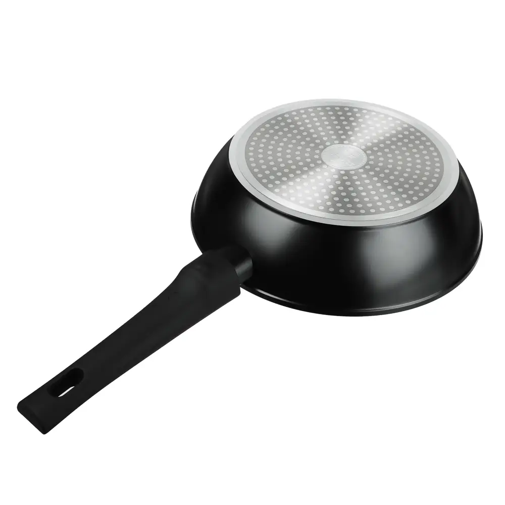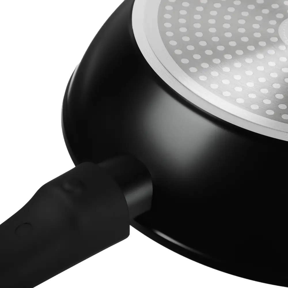 Серия антипригарной посуды «Оникс» от бренда SATOSHI отличается уникальным антипригарным покрытием с оригинальным рисунком. Высокопрочное покрытие посуды не позволяет пище пригорать и прилипать к поверхности. Сковорода оснащена удобной ручкой со съемным механизмом, благодаря чему можно использовать ее в духовке, для запекания. Основа сковороды – литой алюминий, который обеспечивает равномерный нагрев на любых типах плит, включая индукционные.. Подходит для ежедневного использования дома и на даче. Надёжная конструкция обеспечивает равномерный нагрев и удобство приготовления. Антипригарное покрытие облегчает уход и позволяет готовить с минимальным количеством масла. Совместимо с индукционными и другими типами плит.