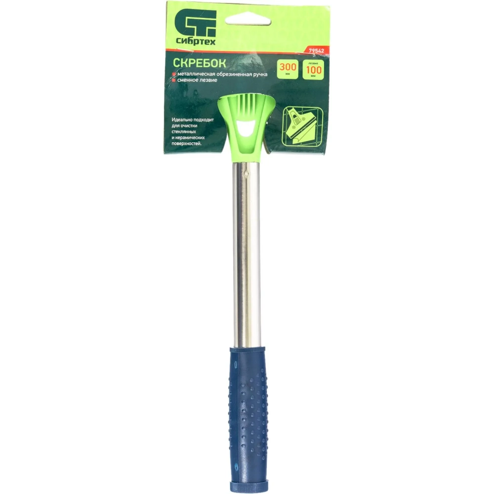 Скребок Сибртех фикс лезвие 100мм металл обрезиненная ручка 300мм 79542