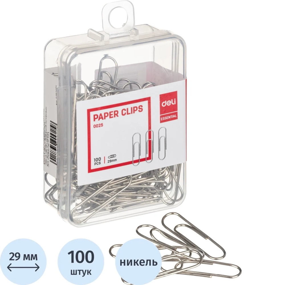 Скрепки Deli E0025 никелированные 28-29 мм (100 штук в упаковке)