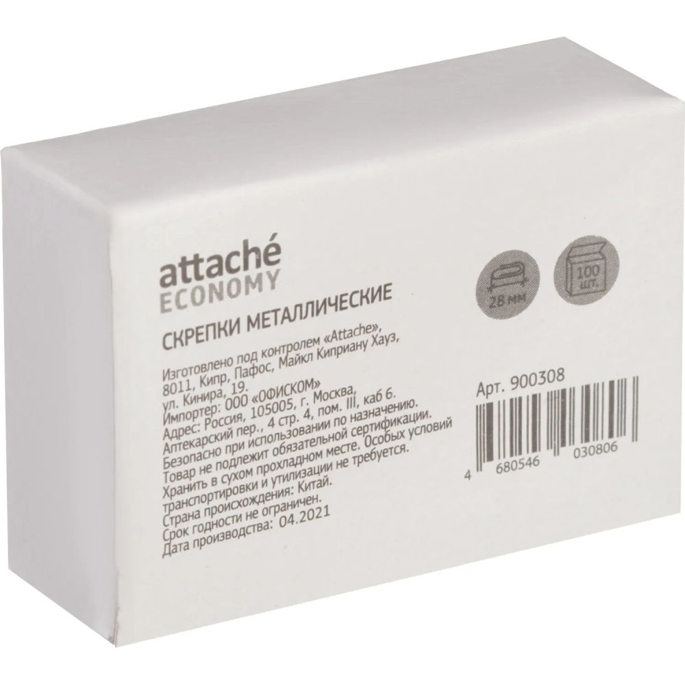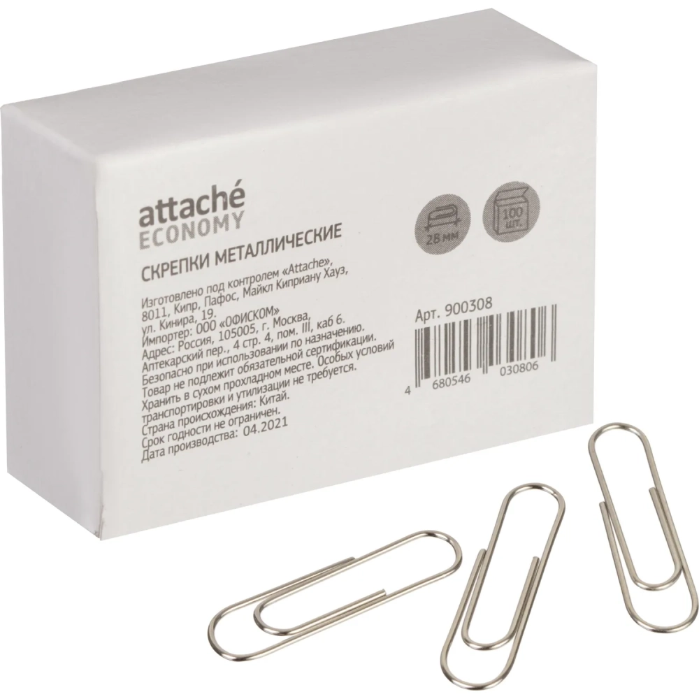 Скрепки никелированные, 28мм, негофрир., 100 шт/уп