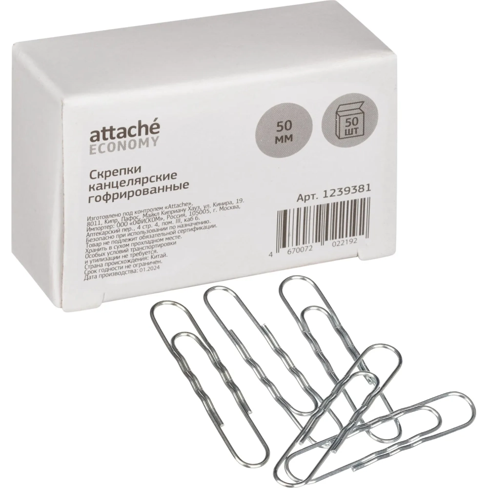 Скрепки оцинкованные, 50 мм, гофрирован., 50 шт/уп
