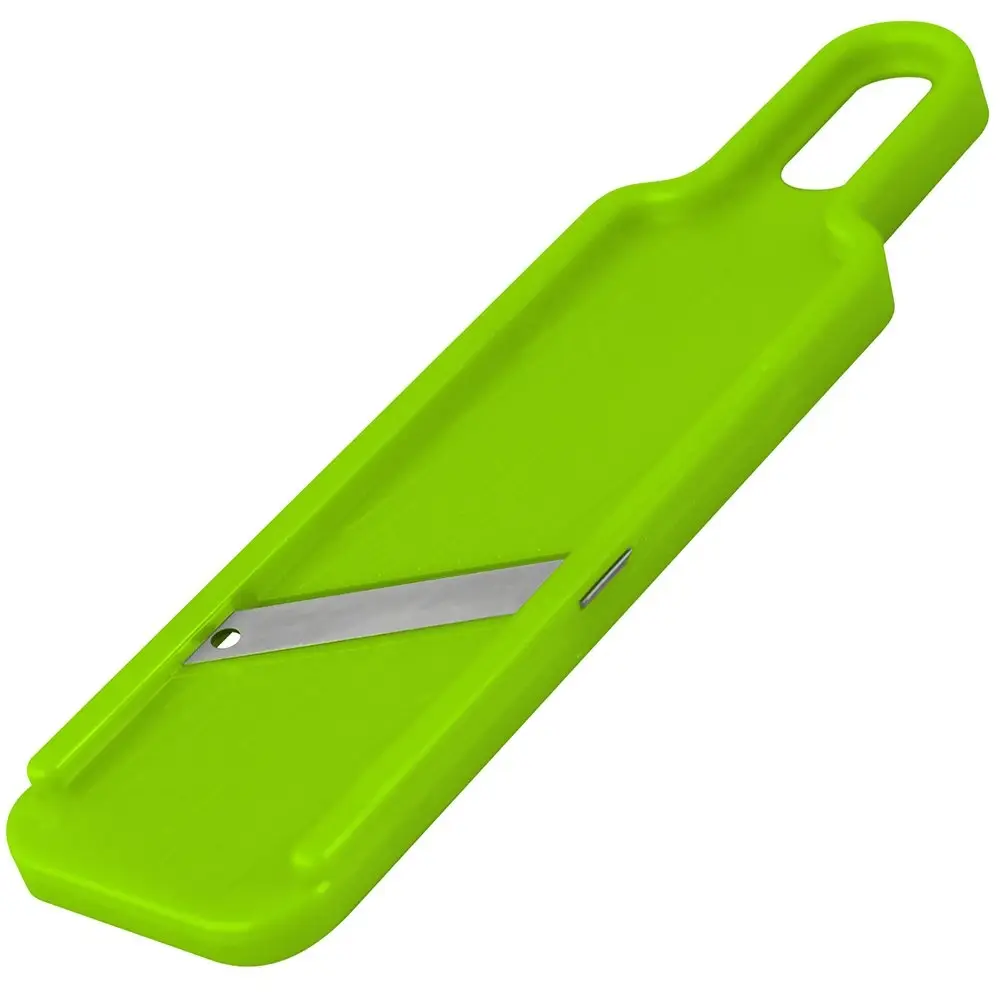 Компактный слайсер поможет вам нарезать тонкими аккуратными ломтиками небольшие овощи, фрукты и ягоды. Также на обратной стороне имеется небольшая терка для измельчения чеснока, имбиря, шоколада и т. п.
