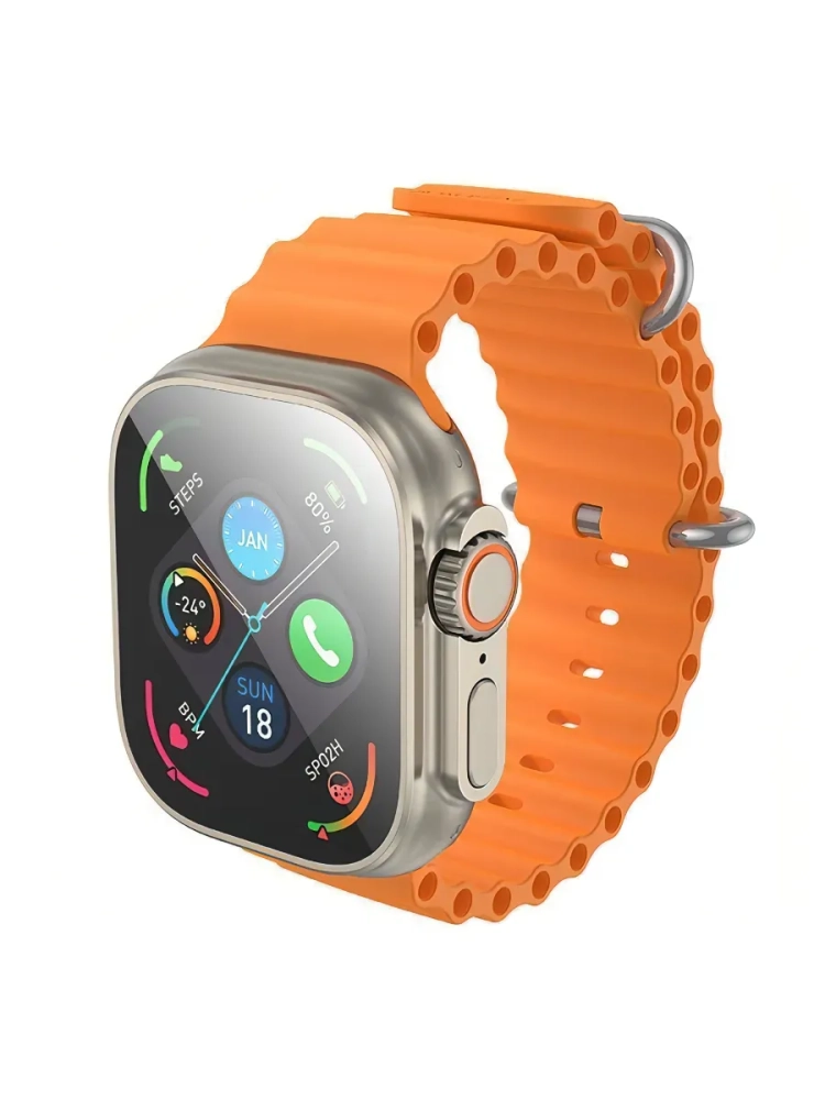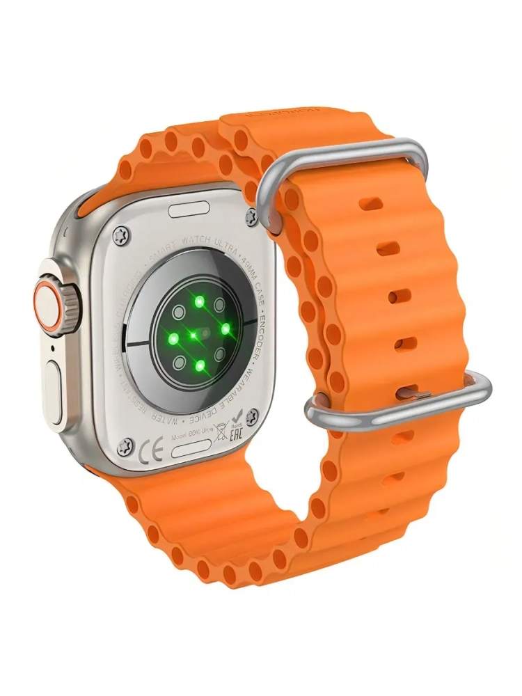 Смарт часы Borofone BD10 Ultra также имеют силиконовый ремешок, который обеспечивает комфортное ношение устройства на запястье. Этот ремешок имеет оранжевый цвет и может быть легко заменен на другие варианты, если вы хотите изменить стиль своих часов.