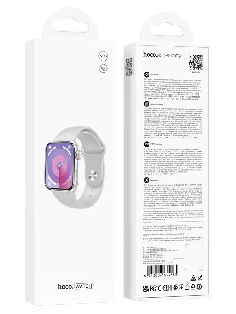 Смарт-часы Hoco Y23 Watch представляют собой современное устройство, которое сочетает в себе функциональность и стиль. Серебристый цвет корпуса и браслета из силикона придают часам элегантность и утонченность.
