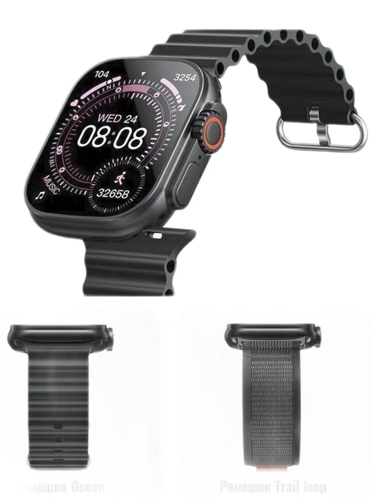 Смарт часы HOCO Y42 ULTRA . Ремешок Ocean loop . Ремешок Trail loop . Магнитный кабель зарядки . Инструкция