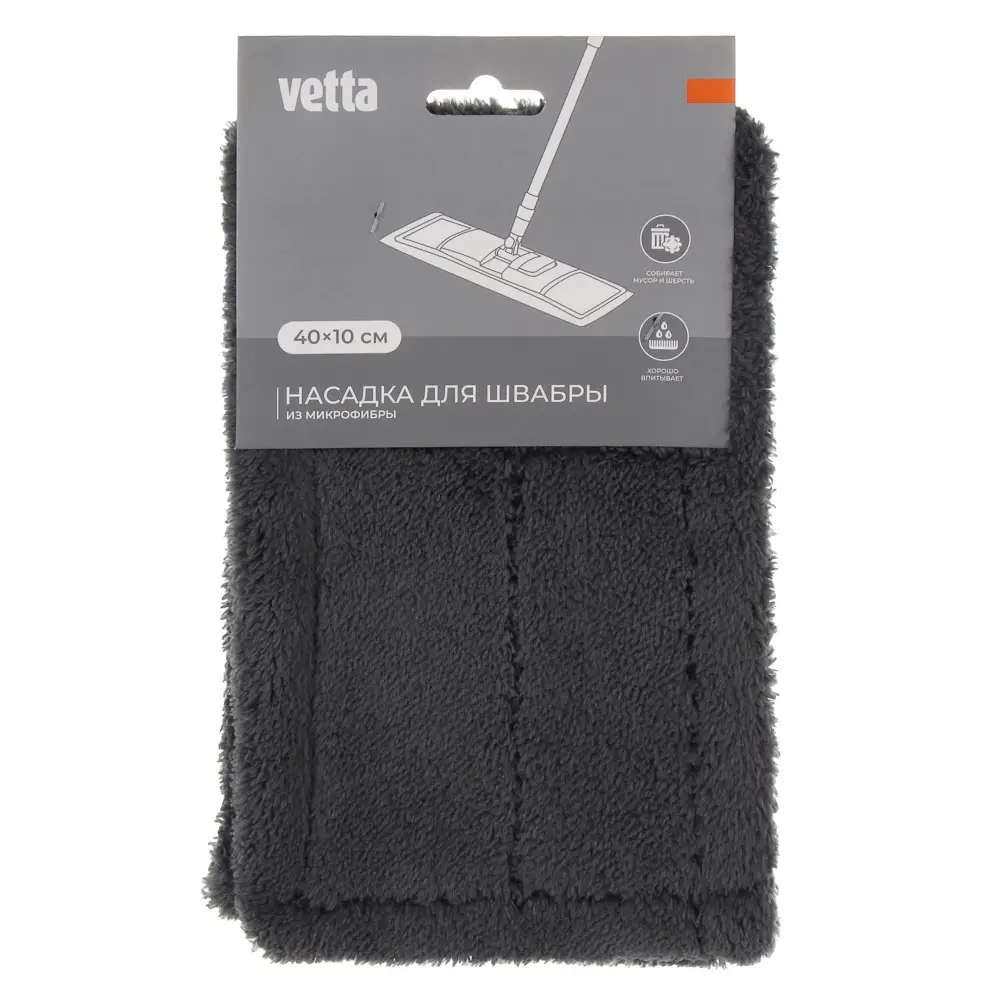 Сменная насадка для швабры VETTA изготовлена из качественной микрофибры и предназначена для эффективной и комфортной уборки различных напольных покрытий. Материал отлично впитывает влагу, собирает пыль, грязь и мелкий мусор, не оставляя разводов и царапин на поверхности. Внешний размер насадки составляет 43×13 см, а внутренний размер 40×10 см, что обеспечивает надёжную фиксацию на швабре и плотное прилегание к рабочей поверхности. Насадка устойчива к износу, легко очищается после использования и подходит для многократной стирки, сохраняя свои очищающие свойства на протяжении длительного времени.