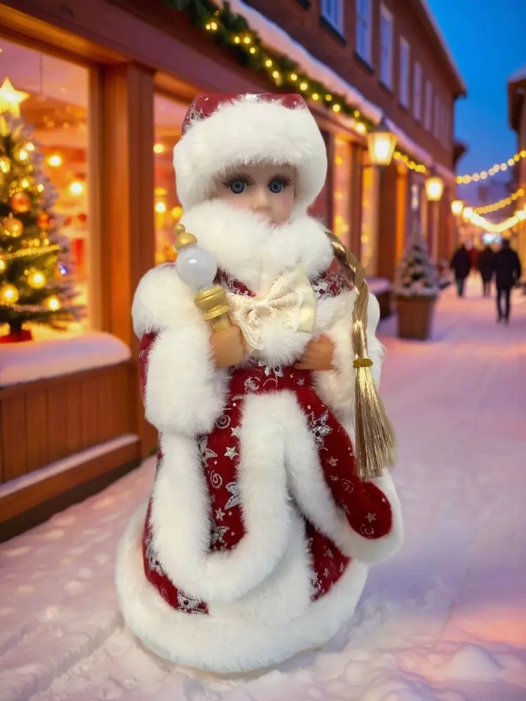 Скоро Новый год, и Дед Мороз с Снегурочкой снова готовы порадовать нас праздником! Мы рады представить уникальную игрушку - Снегурочка под елку высотой 30 см. Это отличное украшение для нового года, добавляющее волшебство в ваш дом.