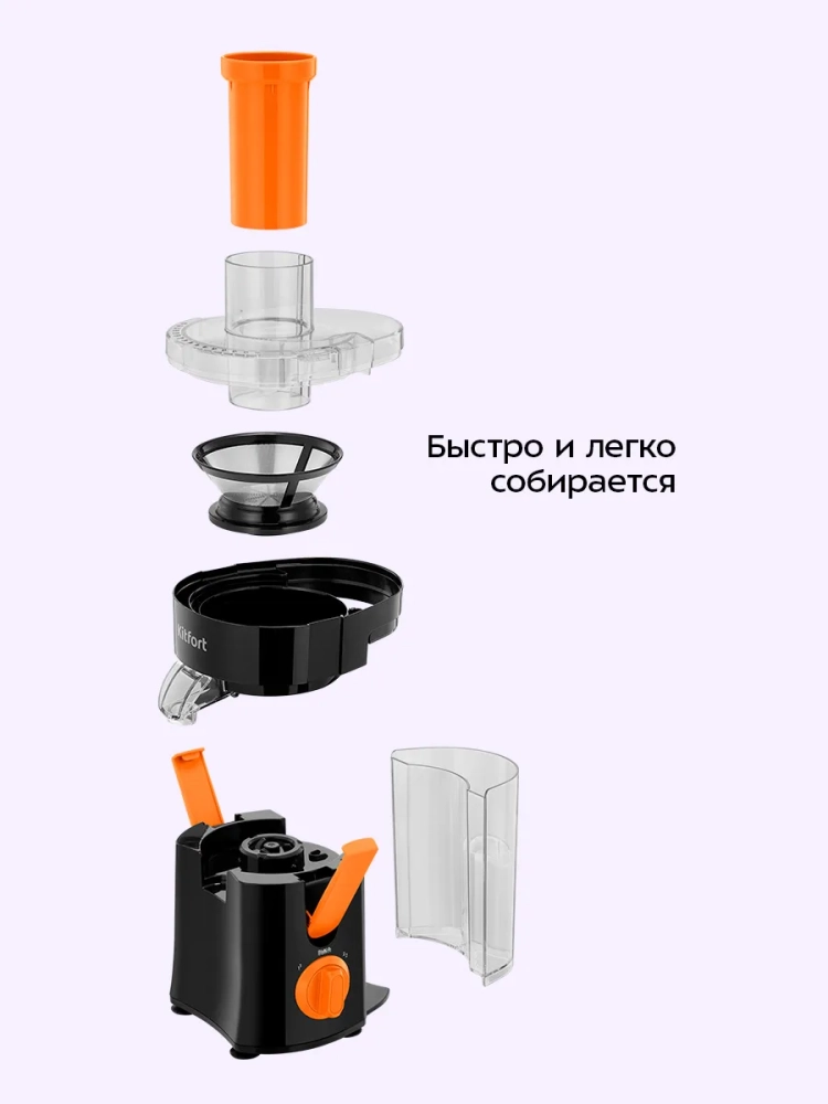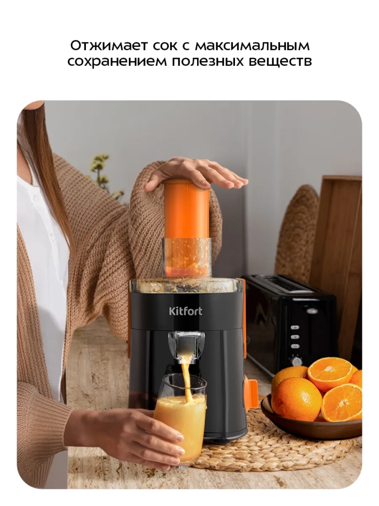 Центробежная соковыжималка Kitfort KT-1198 позволяет отжимать сок из фруктов, овощей и зелени с сохранением всех его полезных компонентов: витаминов, аминокислот и минералов. Соковыжималка имеет компактный размер, легко собирается и очищается после работы.