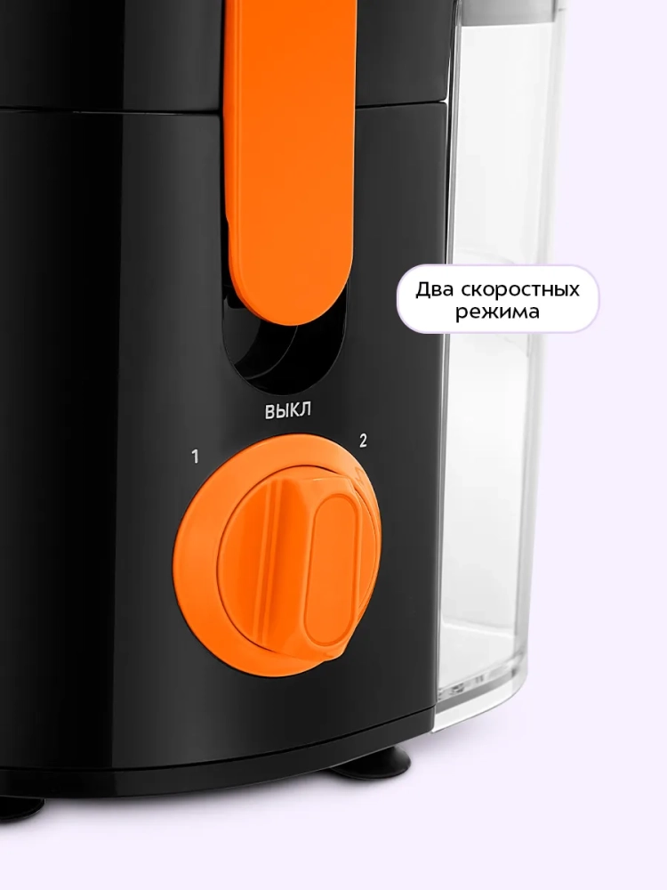 Центробежная соковыжималка позволяет отжимать сок из большинства фруктов, овощей и зелени. Для продуктов разной твердости предусмотрено 2 скорости. За счет большого диаметра загрузочной горловины можно загружать некоторые продукты целиком: небольшие яблоки, морковь и т.д.