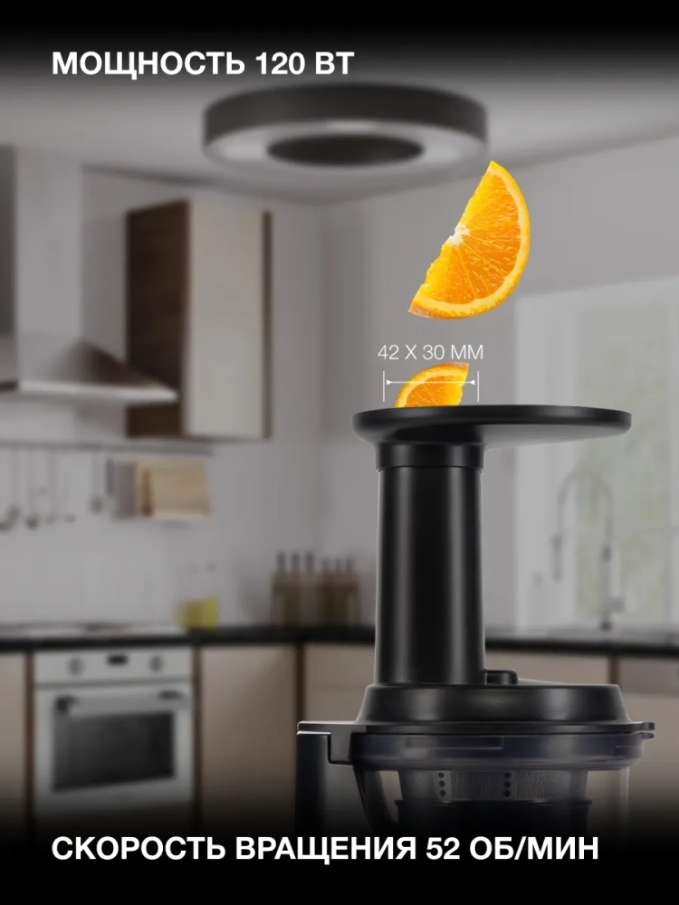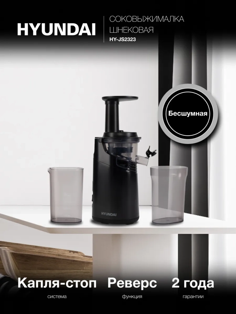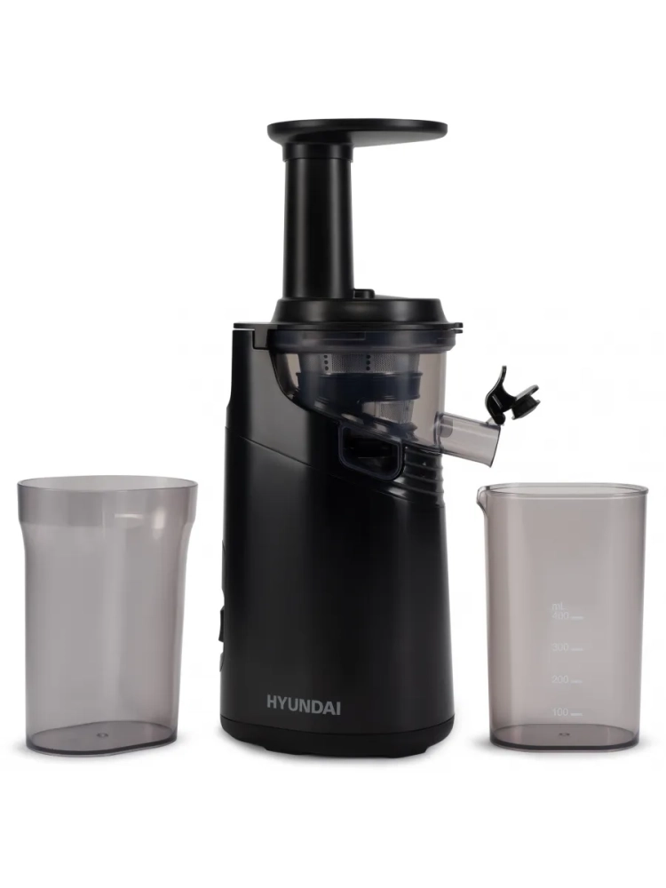 Соковыжималка Hyundai HY-JS2323 черный, шнековая, мощность 120Вт, резервуар для сока 400мл.