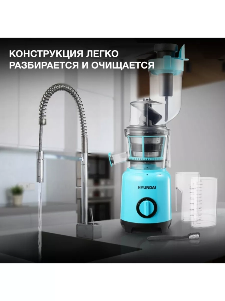 Соковыжималка Hyundai HY-JS6534 светло-синий, шнековая, мощность 300Вт, резервуар для сока 600мл