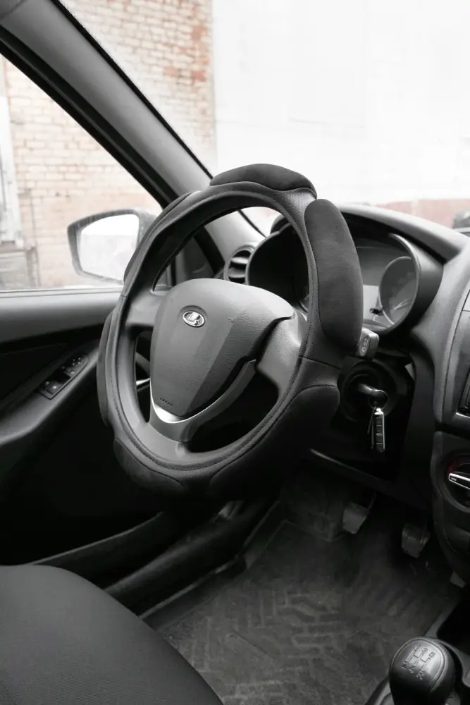 Спонжевая оплетка руля AVS SP-426L-B ( размер L, черный) - Серия "Sponge"