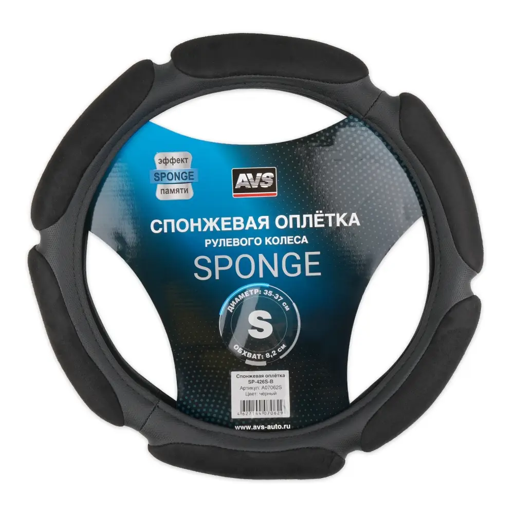 Спонжевая оплетка руля AVS SP-426S-B ( размер S, черный) - Серия "Sponge"