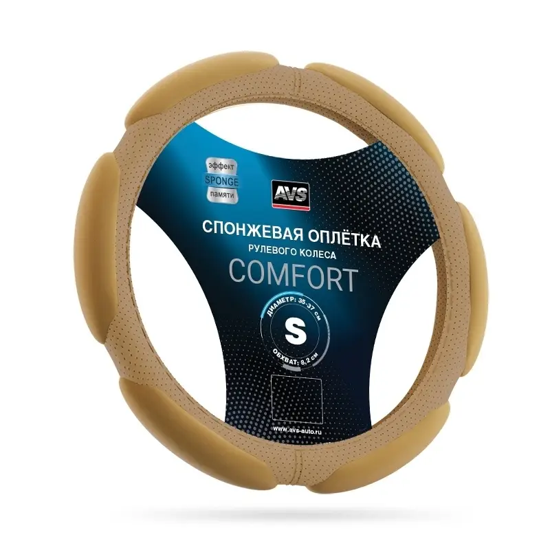 Спонжевая оплетка руля AVS SP-426S-BE ( размер S, бежевый) - Серия "Sponge"