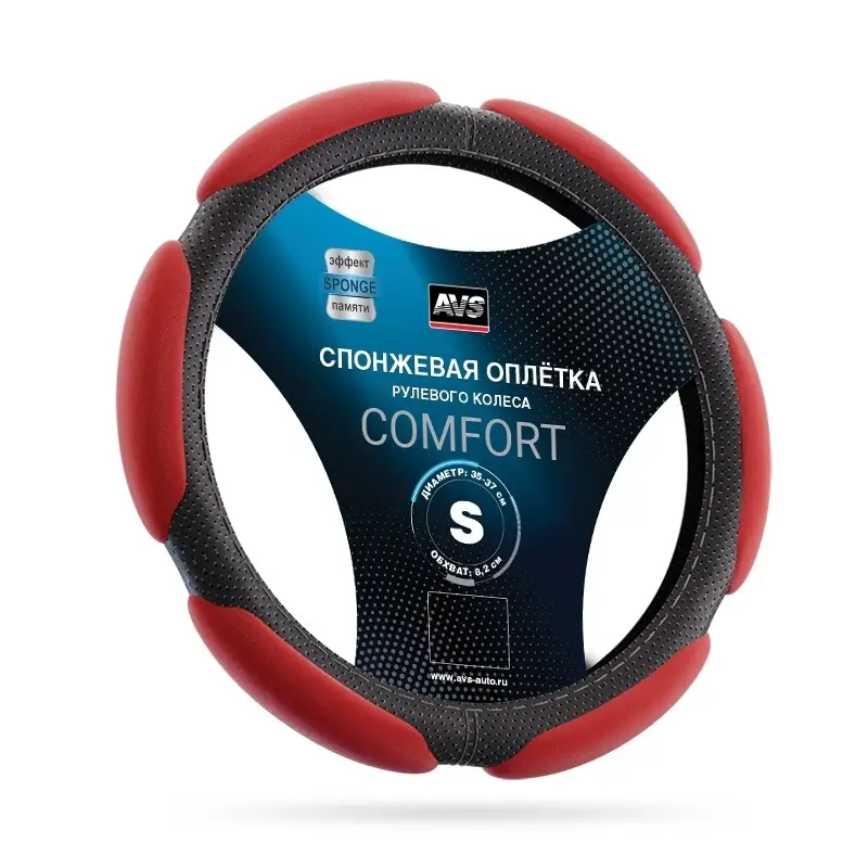 Спонжевая оплетка руля AVS SP-426S-RD ( размер S, красный) - Серия "Sponge"