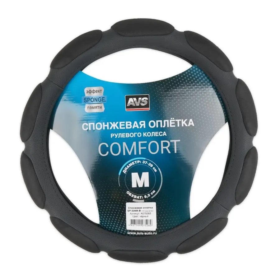 Спонжевая оплетка руля AVS SP-526M-B ( размер M, черный) 10 подушечек - Серия "Sponge"