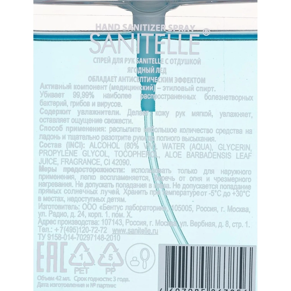 Спрей для рук антисептический Sanitelle с ароматом ягодного льда 42 мл