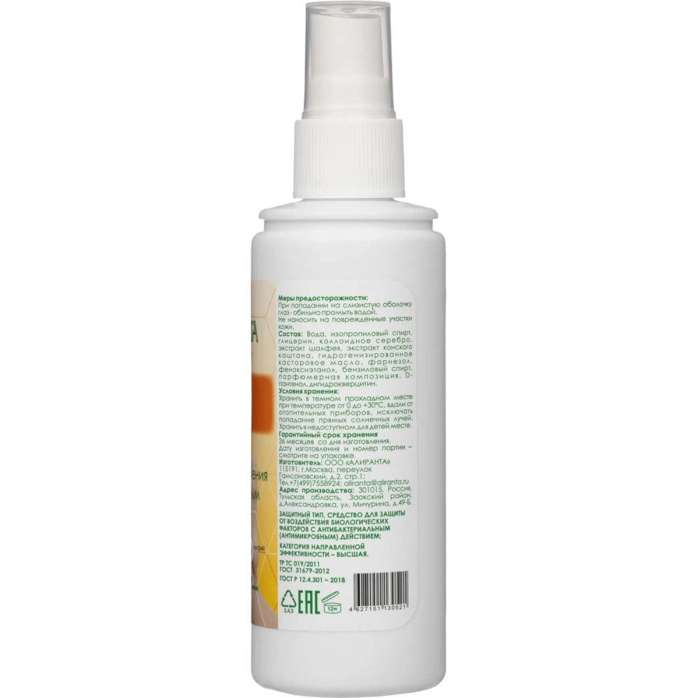 Спрей защитный для кожи ног от пота антибактериальный 100 мл АЛИРАНТА 30005
