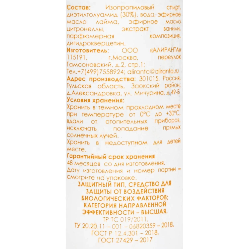 Спрей защитный от укусов кровососущ насек. 100 мл АЛИРАНТА 30002