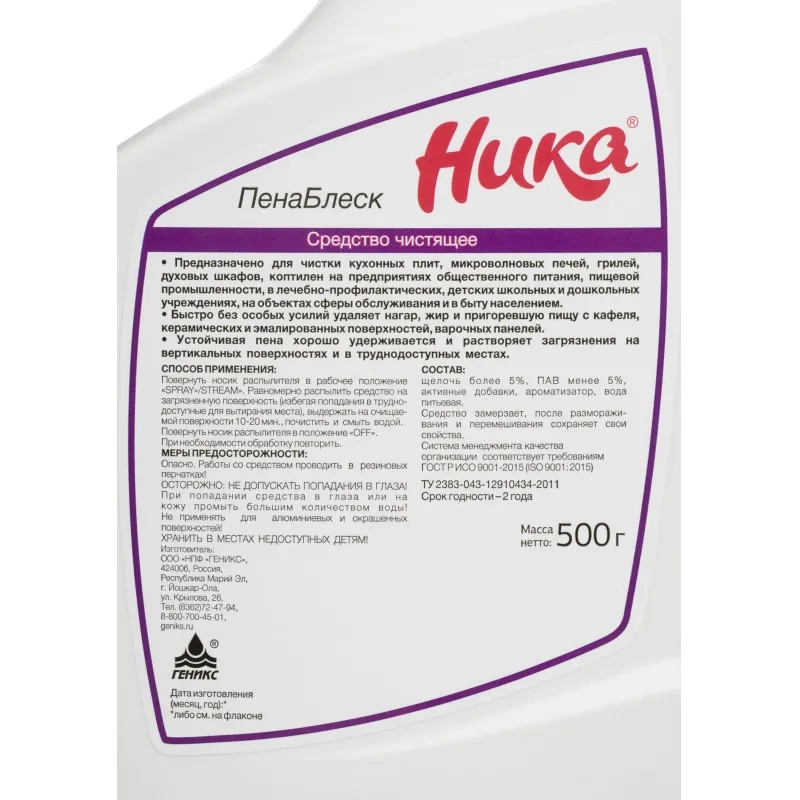 Средство для чистки плит промыш хим Ника-пенаблеск 0,5л